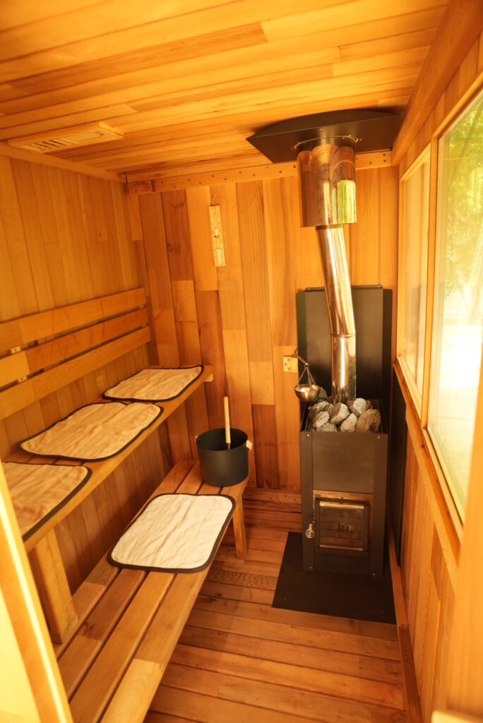 サウナ室には最大4名ご利用可能で、整い空間からは豊かな自然と夜には満天の星空も!
