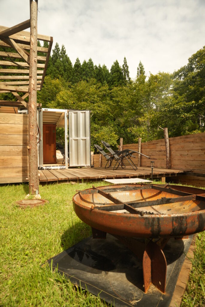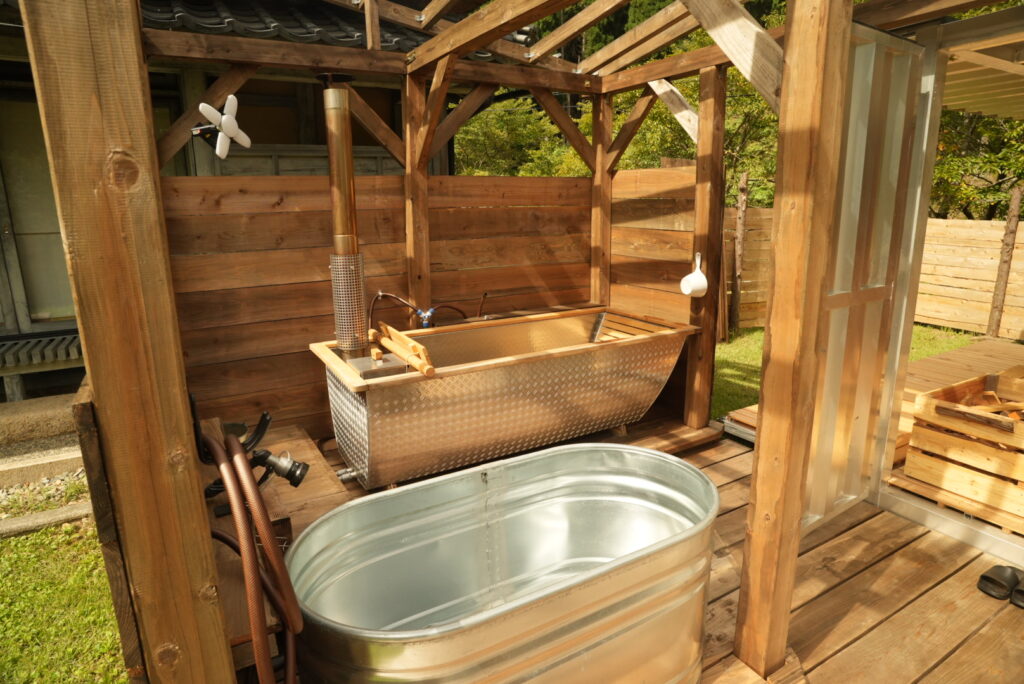 庭スペースに本格プライベートサウナ(水風呂完備)と薪風呂を常設し